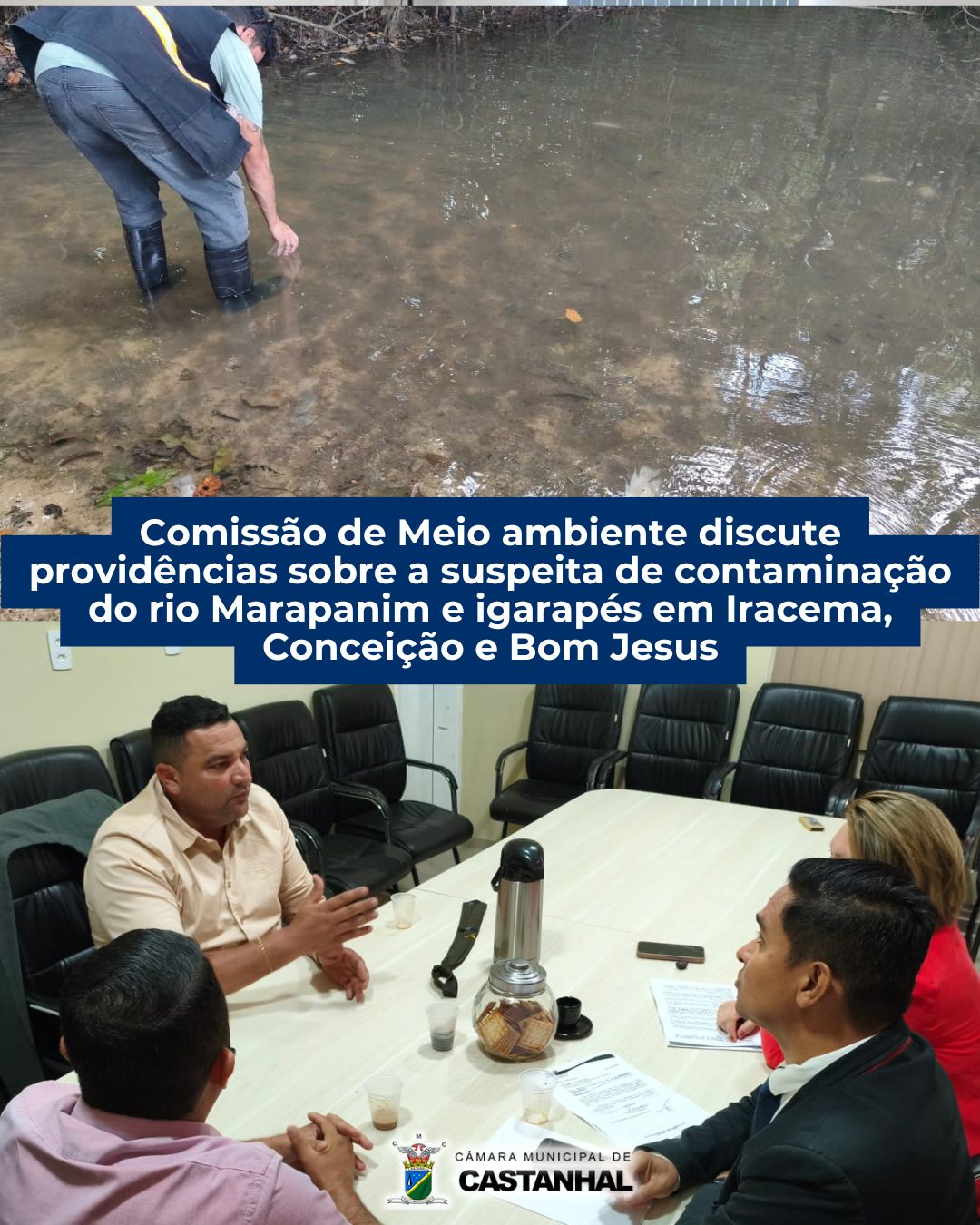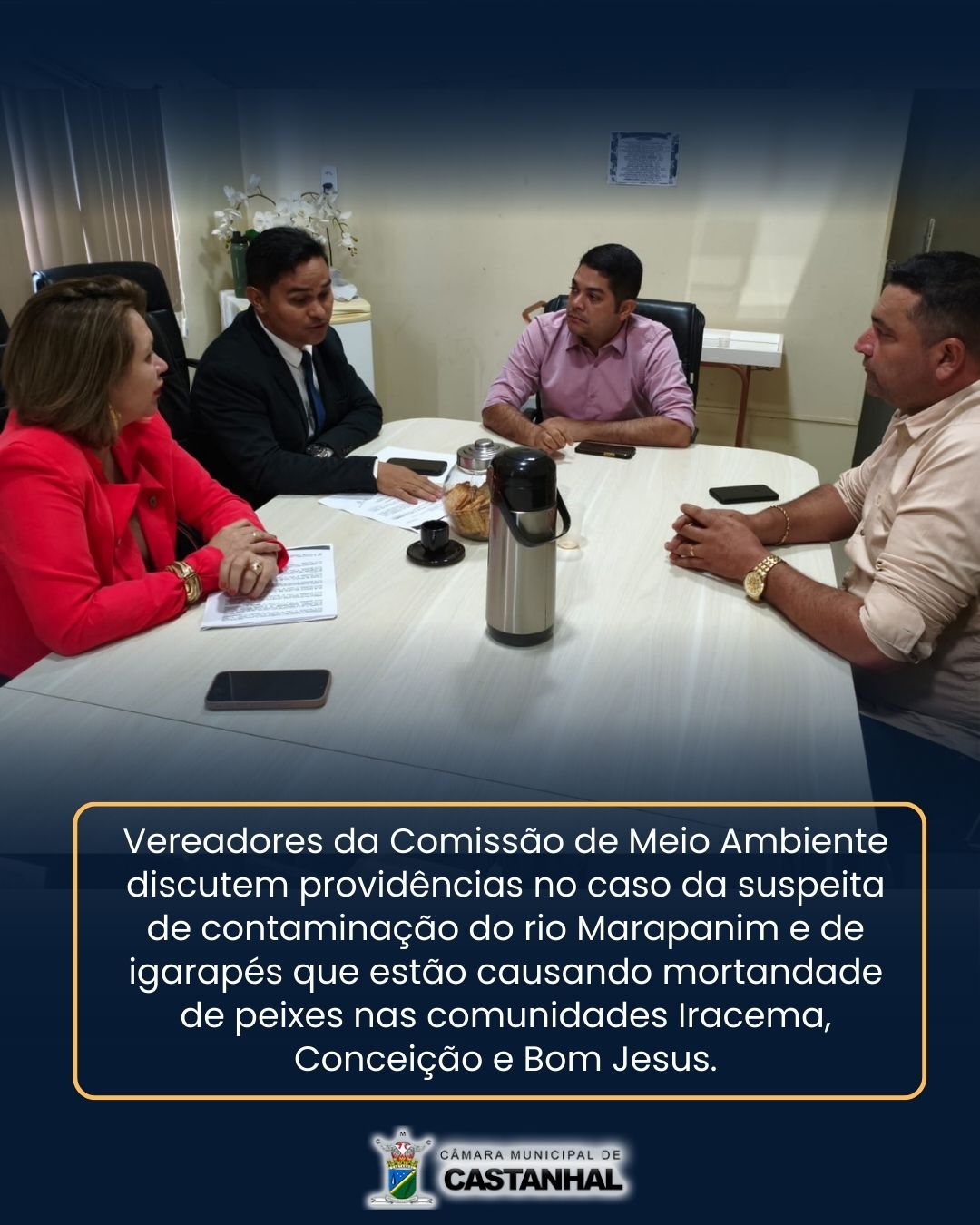 A Comissão de Meio Ambiente da Câmara Municipal de Castanhal, que tem como presidente o parlamentar Everton Matos, e ainda Cláudia Seabra, Diego Saliba e Elton Sampaio como membros, se reuniu na manhã de hoje, 22 de janeiro, logo após a sessão ordinária na Casa de Leis, para discutir quais os próximos passos para fiscalizar o que está sendo feito pela secretaria de Meio Ambiente do Município e outros órgãos, no tocante a suposta contaminação do Rio Marapanim, igarapés e afluentes da região, que está inclusive provocando mortandade de Peixes.